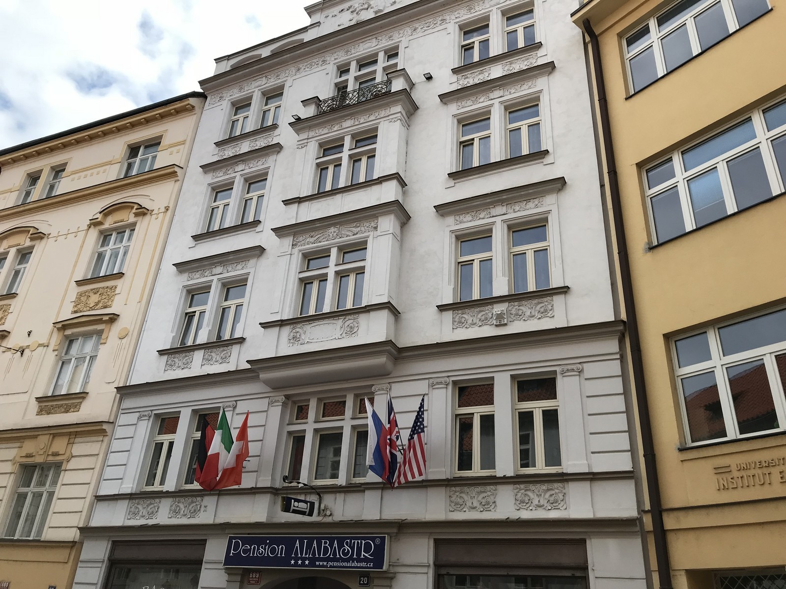 Pension Alabastr v klidné ulici poblíž Vaclavského náměstí se zahradkou ve vnitrobloku.