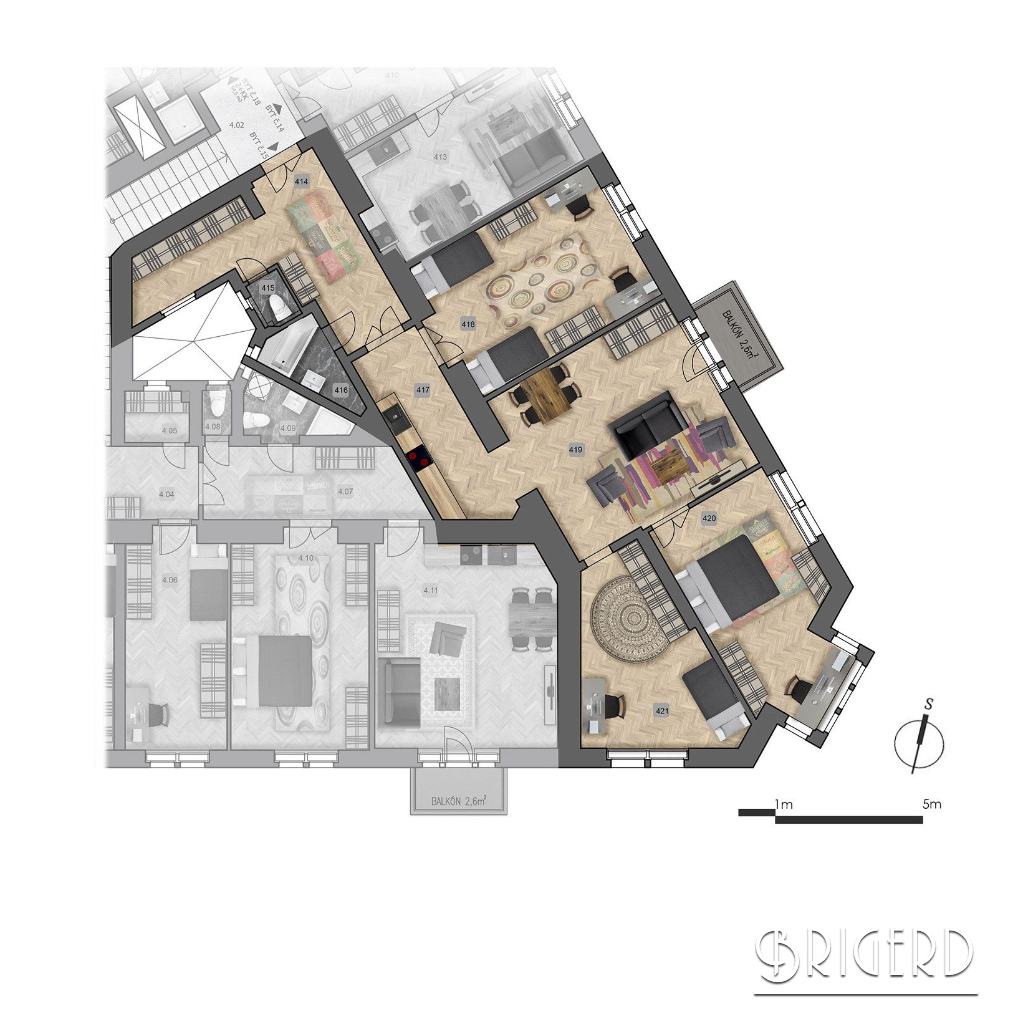Компания BRIGERD предлагает в продажу квартиру 4+kk в одном из самых престижных мест Праги. Квартира с высокими потолками, балконом и эркером расположена на 4 этаже нового проекта после полной реставрации в красивейшей улице с деревьями японской вишни и рядом со знаменитым парком Riegrovy Sady (Риегровы сады). В данном районе просто нет на продажу новых резиденций после реставрации! Здание 1908 года.