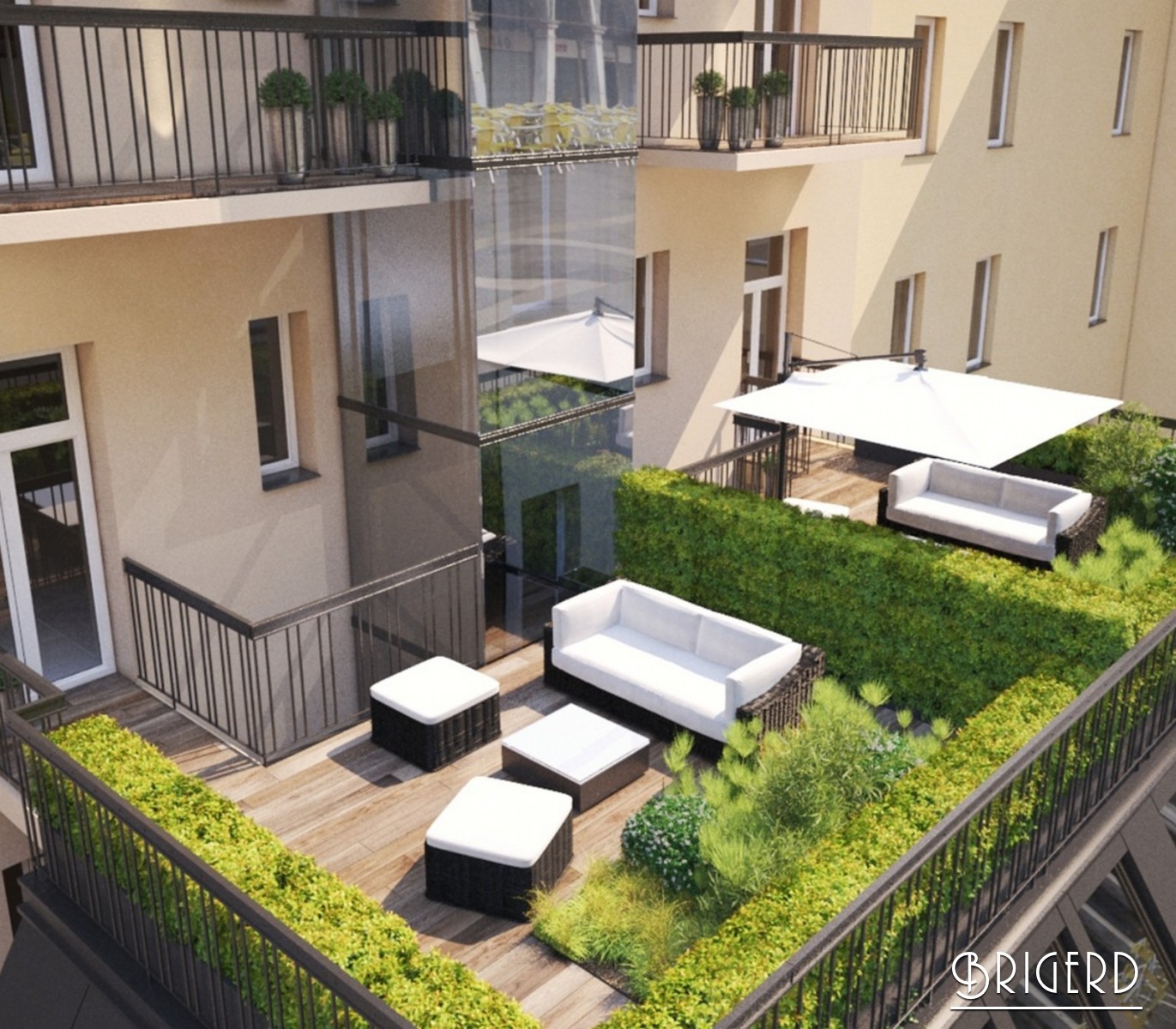 Жилой дом прошел полную реконструкцию. В рамках реновации будет построен наружный лифт. Во внутреннем дворе появятся просторные террасы. Туда же выходят и балконы у некоторых квартир.