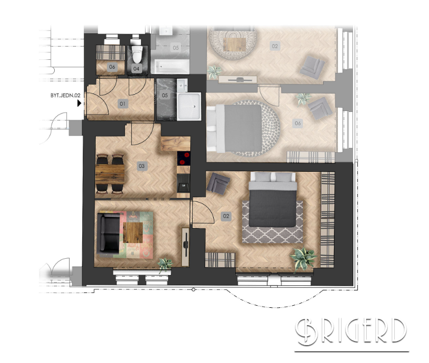 Компания BRIGERD предлагает на продажу квартиру 2+кк площадью 59 м2, расположеную на 1-м этаже построенного в стиле модерн, жилого дома. Угловой дом, в котором находится квартира, стоит на тихой боковой улице, всего в нескольких шагах от площади Братржи Сынку, в месте с полным перечнем удобств, с отличным сообщением до центра города, а также рядом с несколькими парками.