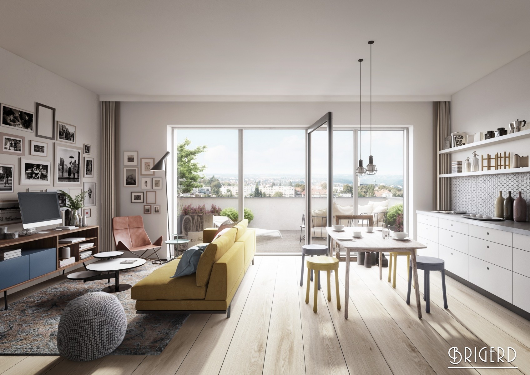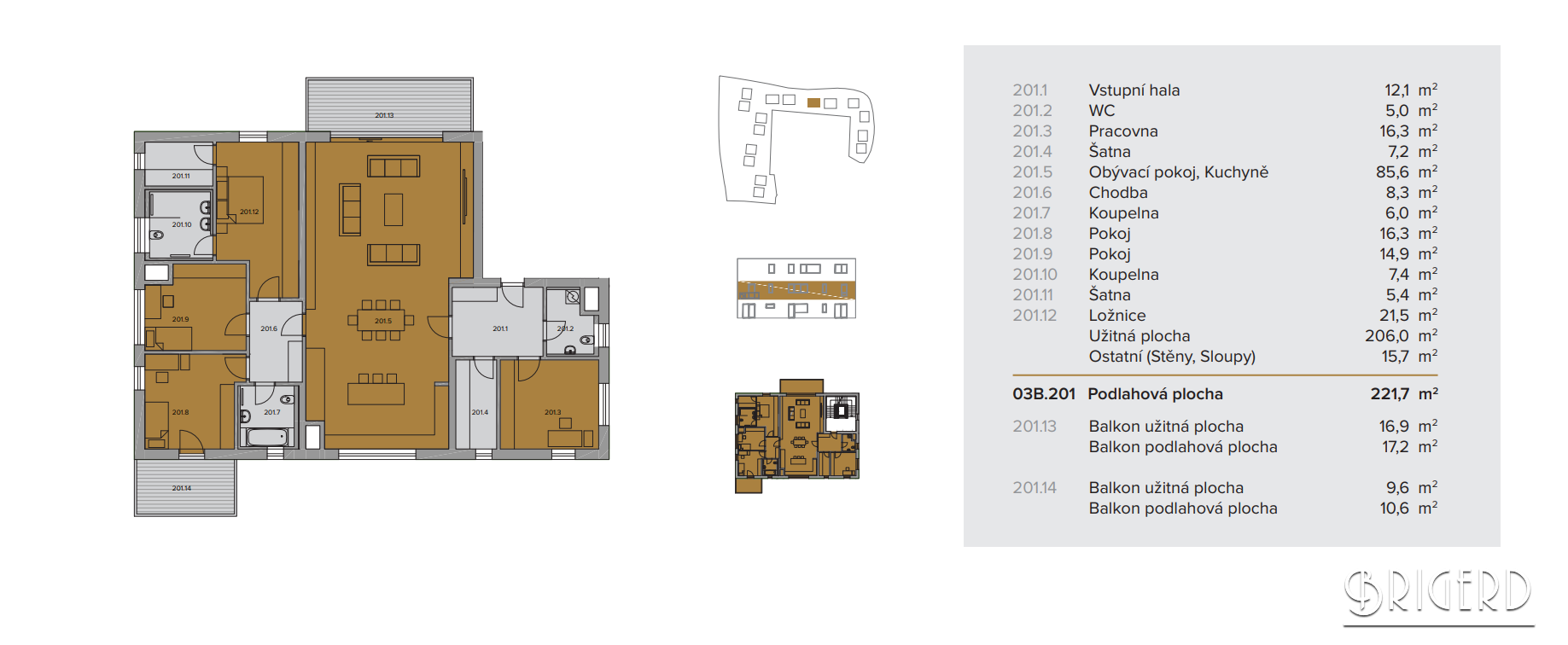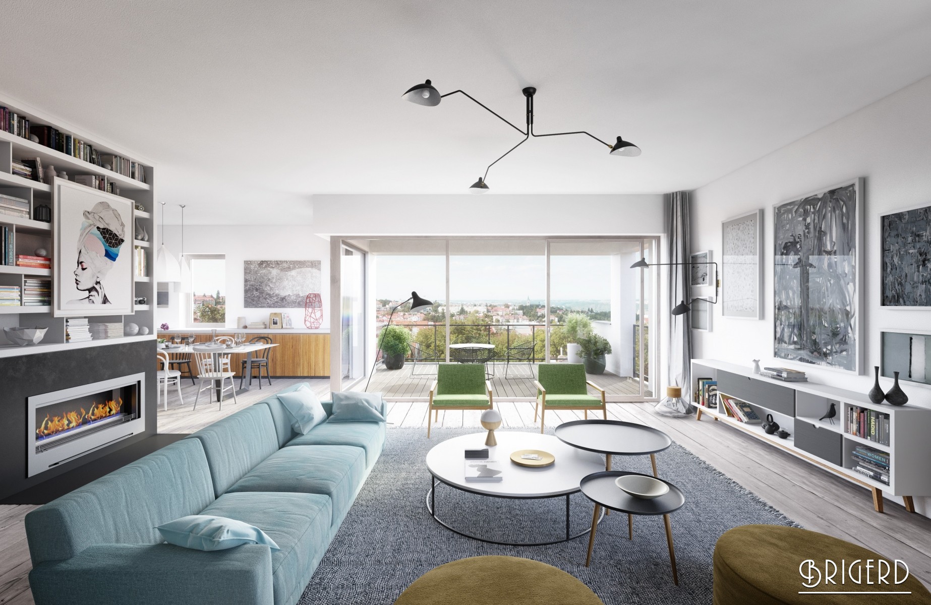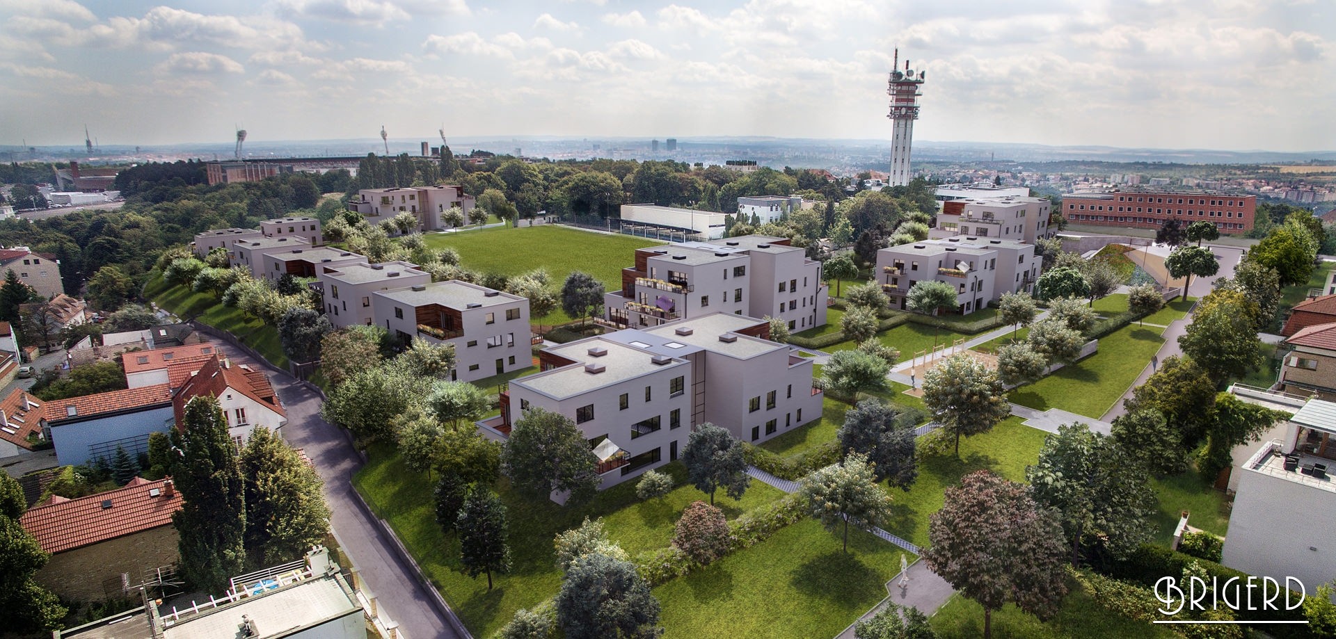 Компания BRIGERD предлагает квартиру 5+кк площадью 222м2 с 3 парковочными местами, 14-метровой кладовкой и двумя балконами на 2 этаже таунхауса в резиденции La Crone (Praha 6 – Ladronka).