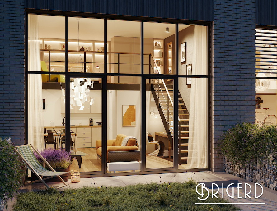 Агентство недвижимости Brigerd предлагает на продажу двухэтажную квартиру в стиле Loft 2+кк площадью 64 м2 в новой строящейся резиденции So-Ho. Высота потолка в Лофте 4,5 метра. Имеется терраса и палисадник 18м2. В квартире большие французские окна на всю стену. Окна ориентированы во внутренний двор резиденции с собственным парком. На первом этаже гостинная с кухней имеет 37м2 и ванная комната 6м2. На втором этаже спальня 18м2.