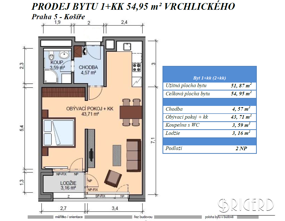 Агентство недвижимости Brigerd предлагает на продажу в Резиденции «Врхлицкого» однокомнатную квартиру с возможностью переделки в двухкомнатную (2+кк).