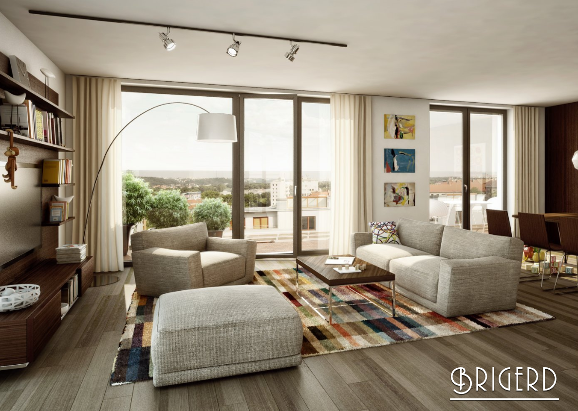 Компания Brigerd предлагает двухэтажную квартиру мансардного типа с планировкой 5+кк, в новом жилом комплексе «Резиденция Подбаба». Площадь квартиры – 175м2. Три терассы достигают в общей сложности 157м2. В квартире Вы также найдете две ванных комнаты с туалетами и один отдельный туалет; три спальни; гардеробную и две кладовые; просторную гостиную; кабинет. С террас открывается панорманый вид на реку и Шарецкую долину.