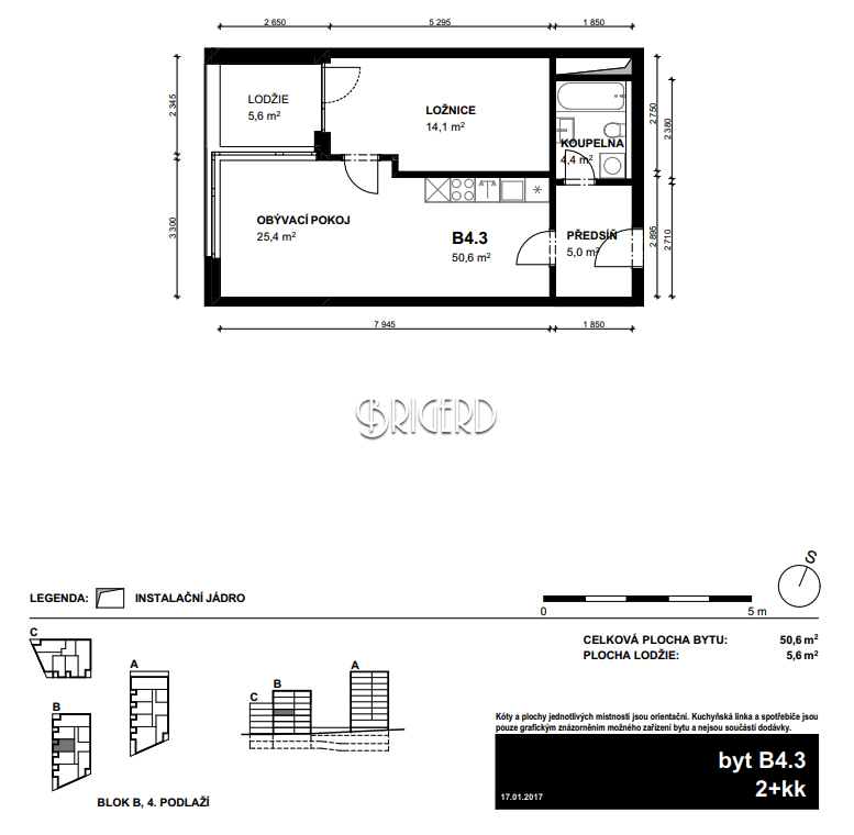 Компания BRIGERD предлагает на продажу квартиру 2+кк  площадью  50,6м2 с лоджией 5,4м2 в строящемся жилом комплексе «Плаза». Проект находится прямо у станции метро Стрижков, окружен зеленью и представляет собой закрытый современный комплекс, полностью соответствующий стандартам современной городской жизни.