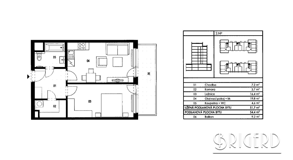 Компания ВRIGERD предлагает квартиру 2+КК 61m² с балконом в новом жилом комплексе «Тулипа Сити» в районе Высочаны - Прага 9 в пешей доступности от метро. Квартира расположена на 2 этаже резиденции и ориентирована в парк. Из прихожей (7,2 m²) Вы можете попасть в гостиную с кухонным уголком (20,8 m²) и спальню (16,4 m²), которые обьединены общим балконом (9,2 m²), также есть ванная с туалетом (7,2 m²) и техническое помещение (3,7m²). Кроме того, в цену входит парковочное место в гараже и кладовка.