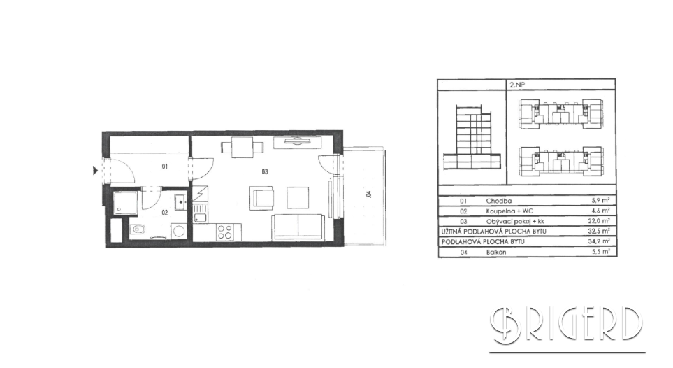 Компания ВRIGERD предлагает квартиру 1+КК 38m² с балконом в новом жилом комплексе «Тулипа Сити» в районе Высочаны - Прага 9 в пешей доступности от метро. Квартира расположена на 2 этаже резиденции и ориентирована в парк. Из прихожей (5,9 m²) Вы можете попасть в гостиную с кухонным уголком (22 m²) и выходом на балкон (5,5 m2), а также в ванную с туалетом (4,6 m2). Кроме того, в цену входит парковочное место в гараже и кладовка.