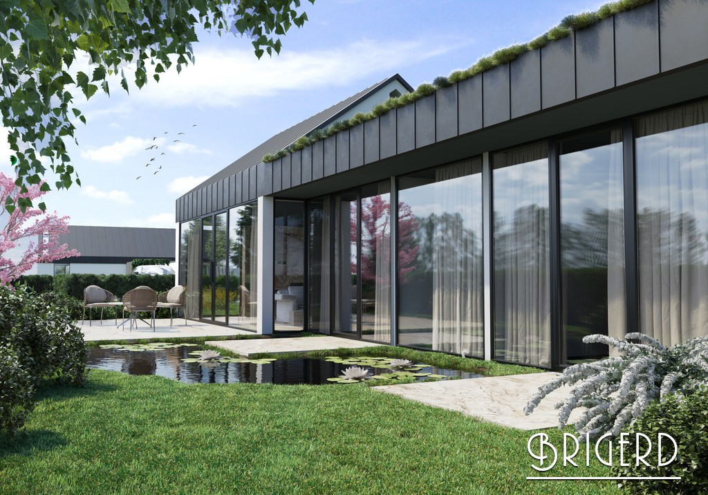 Компания BRIGERD предлагает на продажу «пассивный» низкоэнергетический современный дом 4+k класса ЛЮКС (с возможностью переделать на 5+kk), площадью 119м2 и с земельным участком 640м2. Строительная система будущего Goopan предлагает своим будущим резидентам систему рекуперации воздуха и сохранения тепла в доме. Будут использованы тройные большие французские окна. Нагрев воды происходит за счет солнечных батарей на крыше дома в комбинации с тепловым насосом.